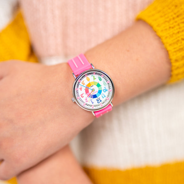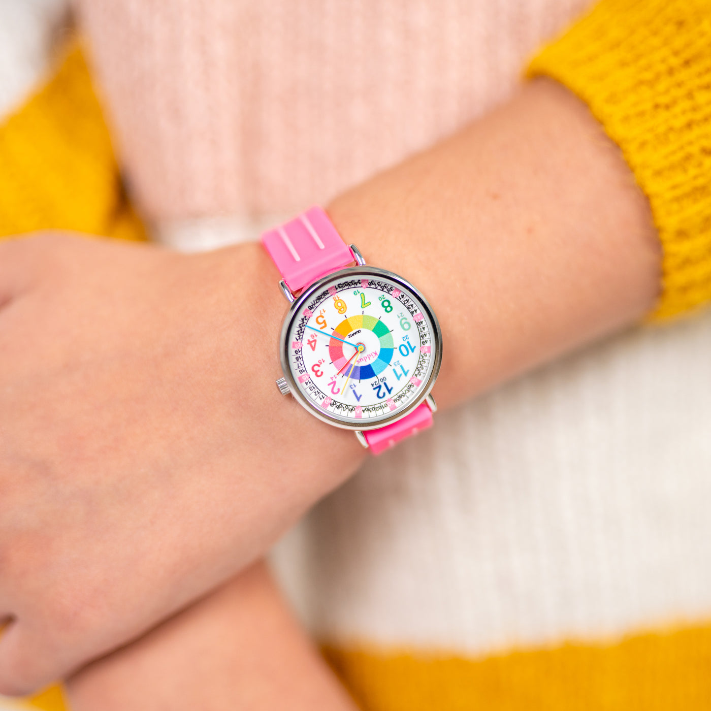 With vibrant designs and clear markers in multiple languages, our Time Teacher watches help kids tell time in any language, building confidence and making learning fun as they grow.