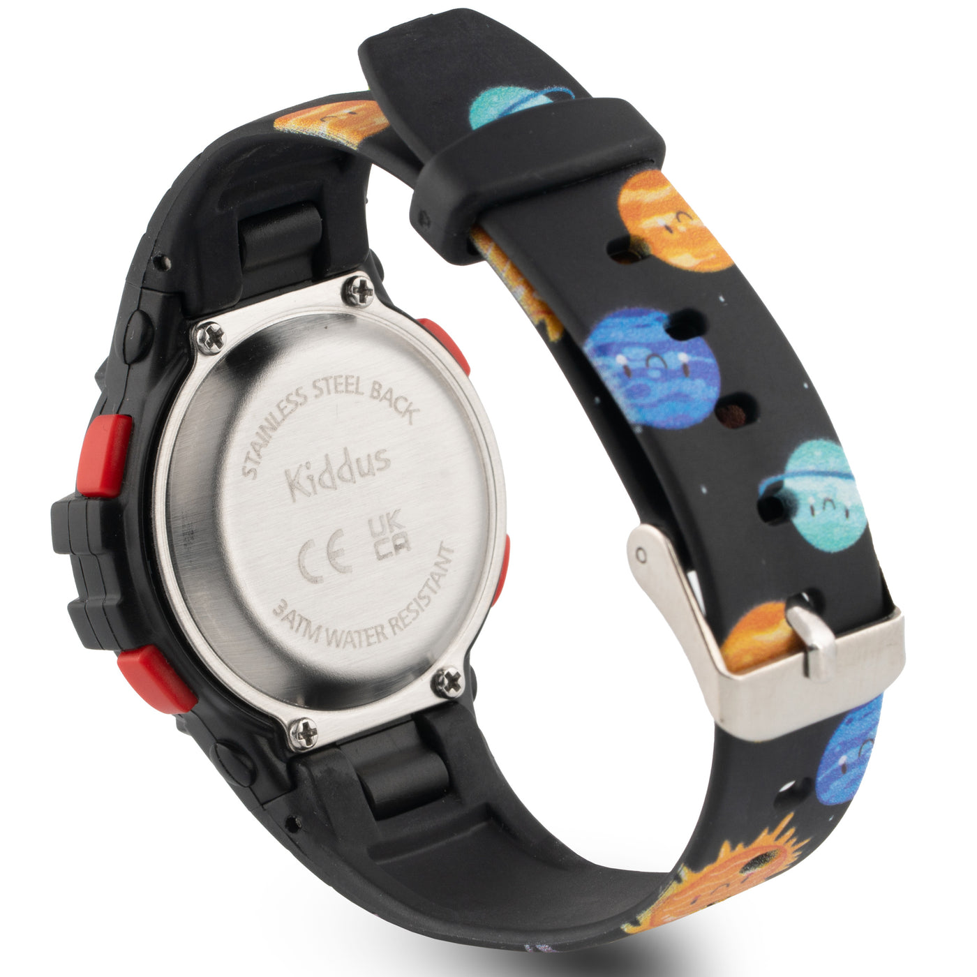 - FIABLE y SEGURO: Carcasa trasera y hebilla en acero inoxidable y sin níquel. Carcasa fabricada en ABS, un material termoplástico muy resistente a prueba de impactos. Correa fabricada en Poliuretano (PU), flexible y duradera. El tipo de batería es L1131F. Pila alcalina de larga duración, sin mercurio y fácil de reemplazar. Este es un reloj a prueba de niños y libre de componentes tóxicos.