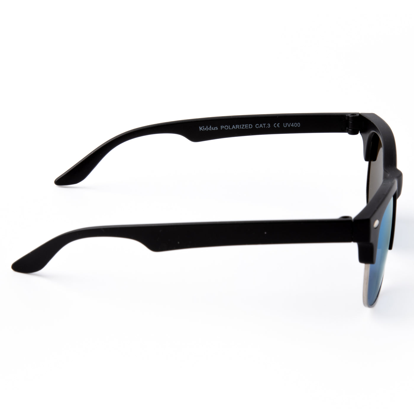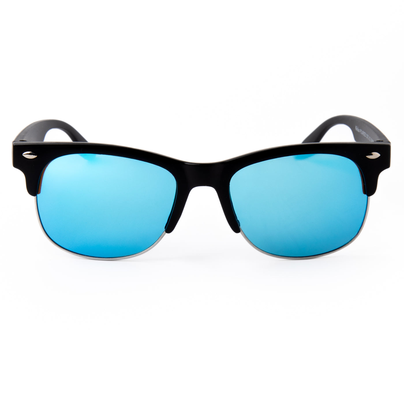 - Occhiali da sole mezza montatura neri per bambini con lenti blu.