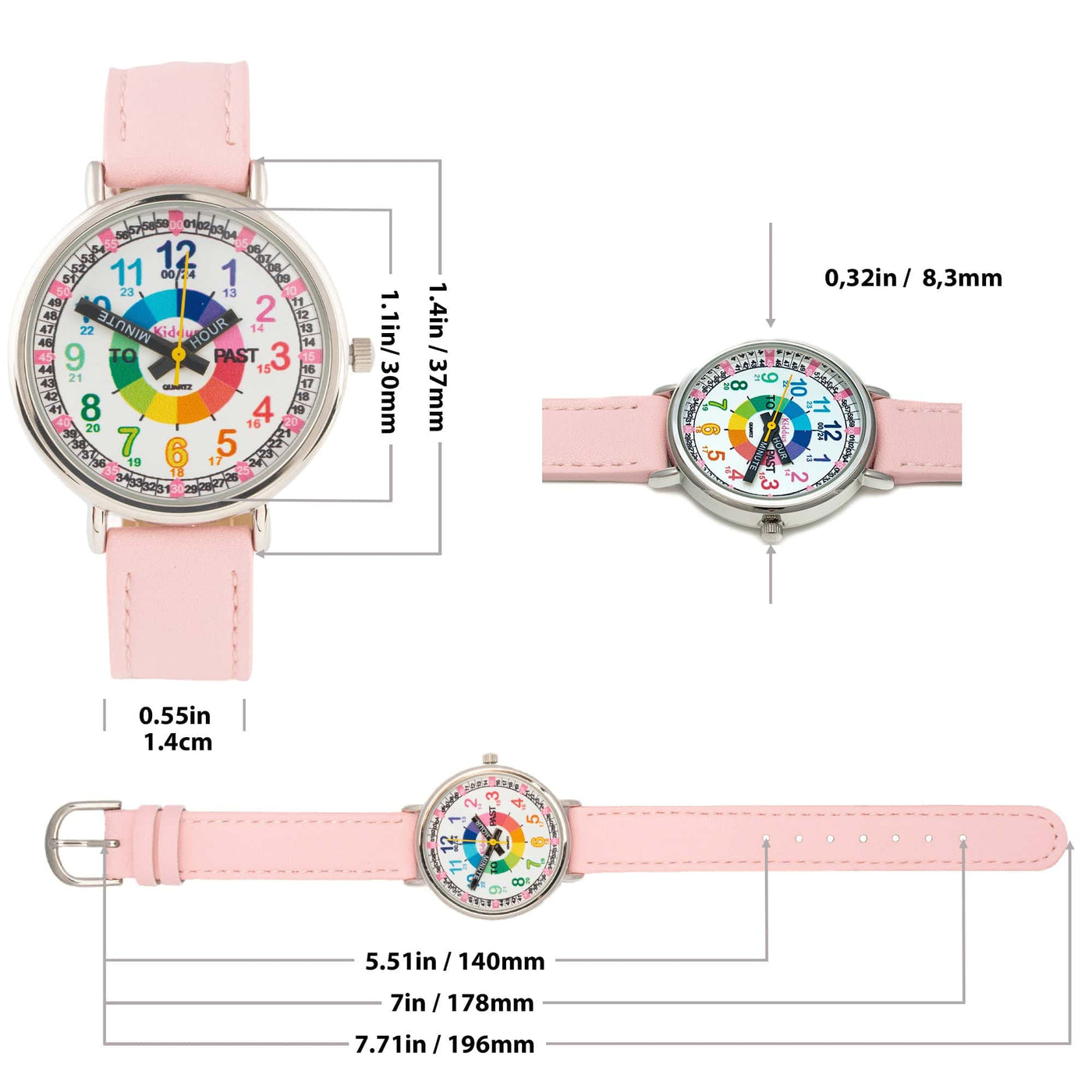 Orologio Educativo Rosa PU Leather per Bambini - Imparare a Leggere l'Ora