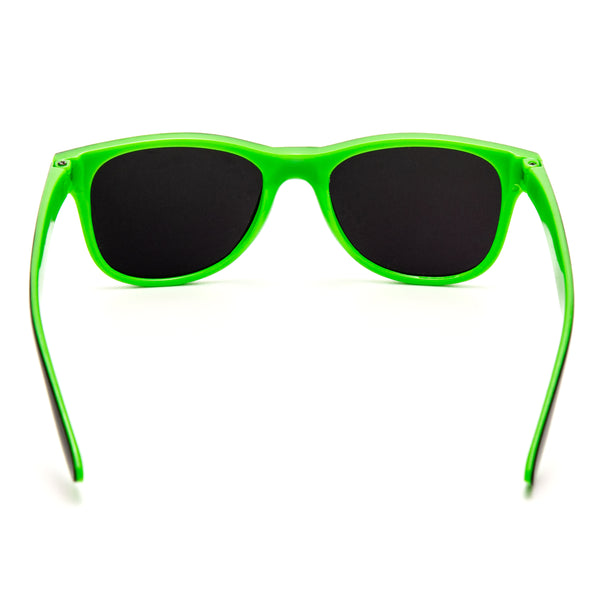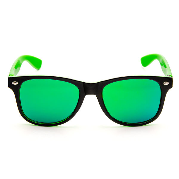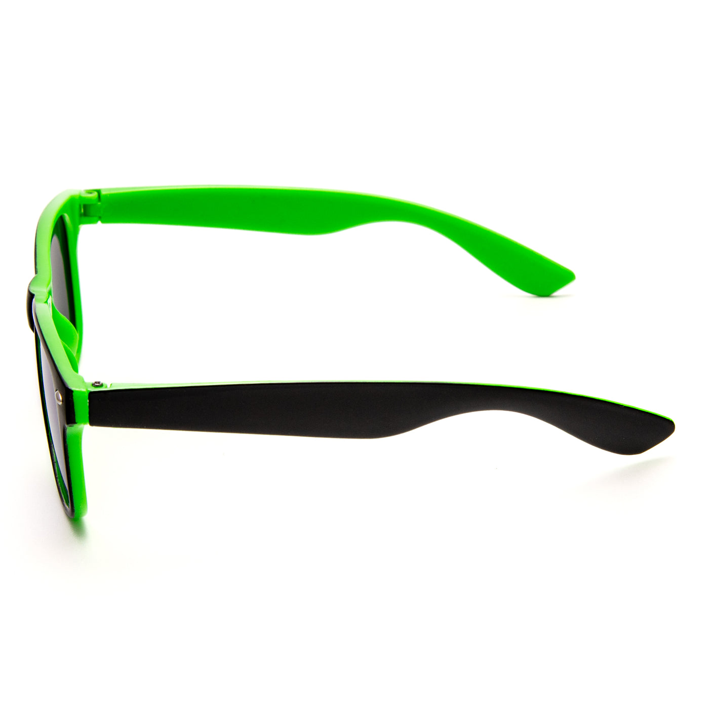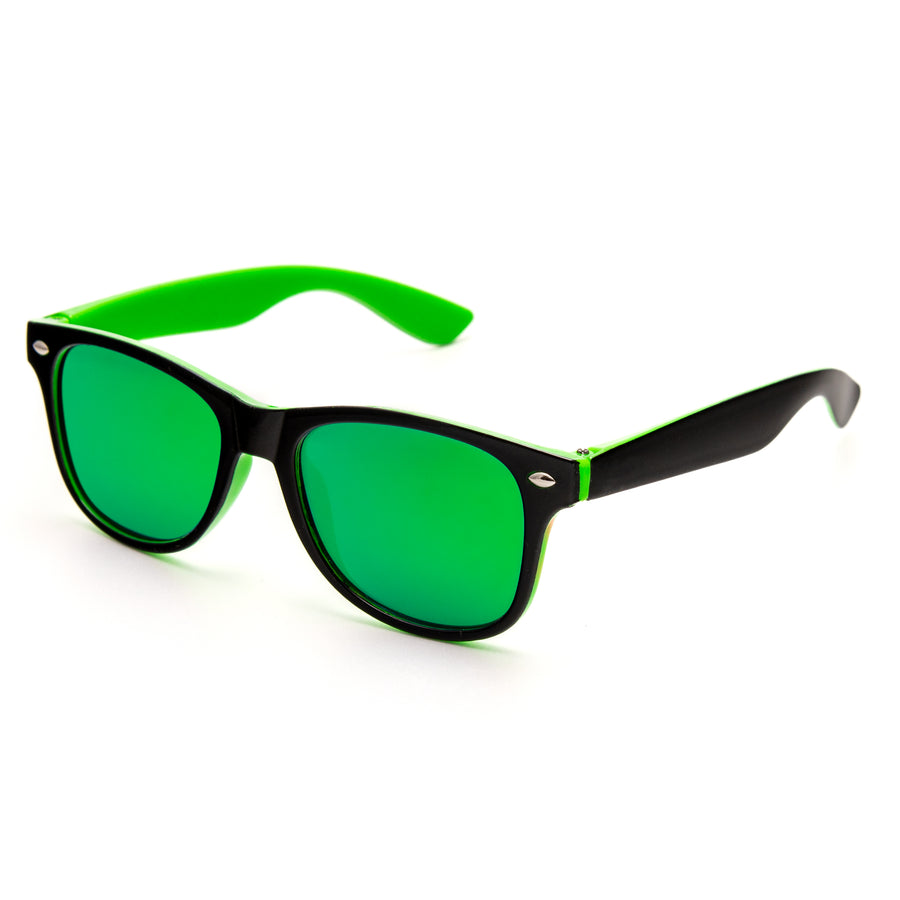 - Occhiali da sole verdi e neriper bambini. Lente blu con effetto specchio.