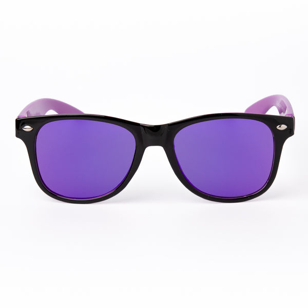 - Occhiali da sole rosa e neriper bambini. Lenti Rosa con effetto specchio.