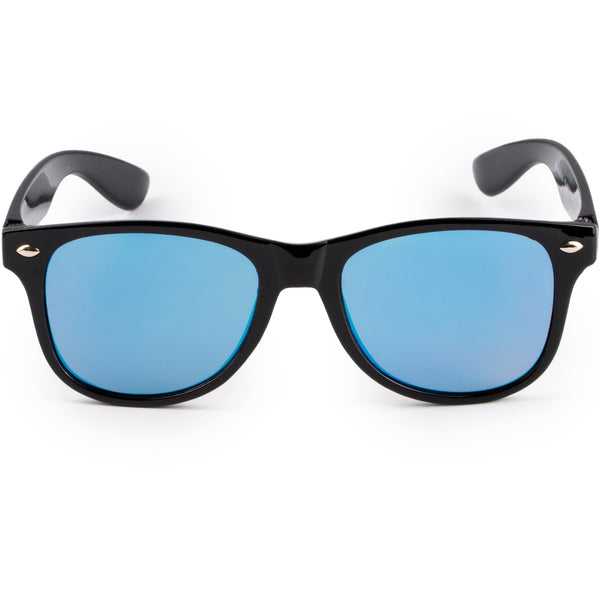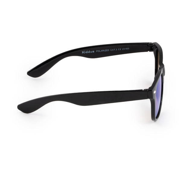 • Occhiali da sole neri per bambini. Lente blu con effetto specchio.