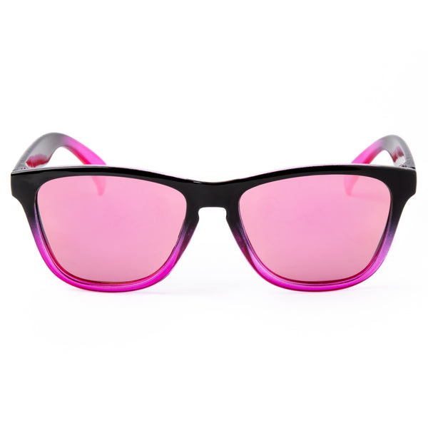 • Occhiali da sole da bambino con sfumatura dal nero al rosacon lenti rosa.