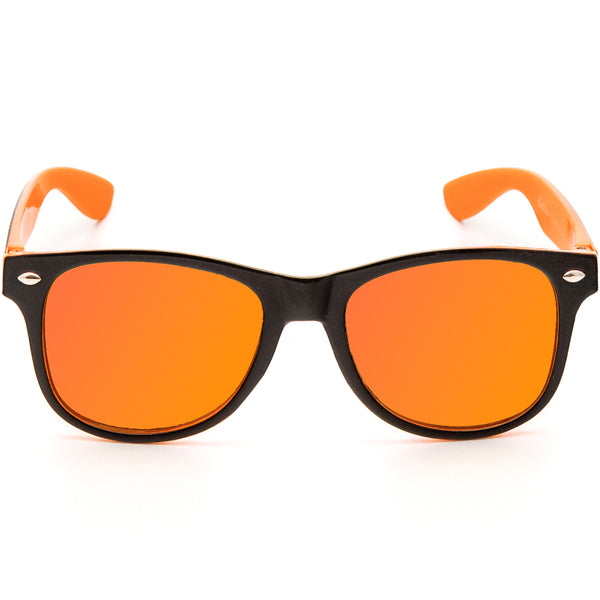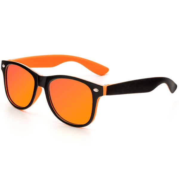 • Occhiali da sole neri per bambini. Lente arancionecon effetto specchio.